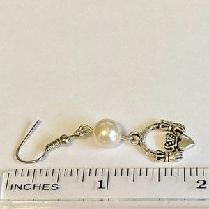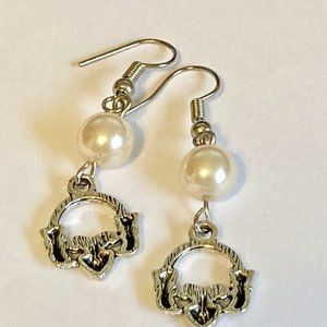 Claddagh Earrings Silver Plated Irish Celtic St Patricks Day White Glass Pearl