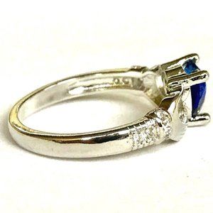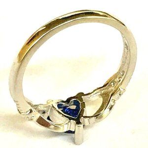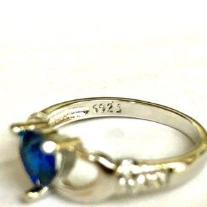 Claddagh Ring Size 7 Silver Plated Irish Celtic Blue Cubic Zirconia Heart Love