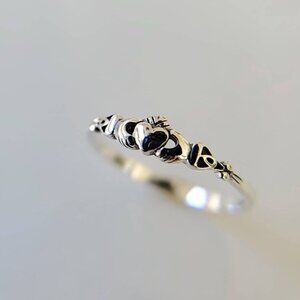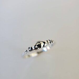 Claddagh Ring, Tiny Celtic Irish Claddagh Ring, Thin Ring, Sterling Silver Women