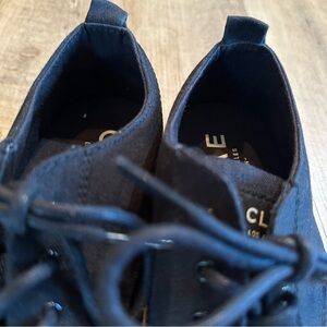 Clae Ellington Textile Sneakers in black, size men’s 10.5. Excellent preowned condition with light dirtiness to the tread and outer rim.