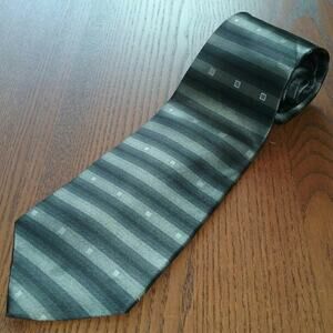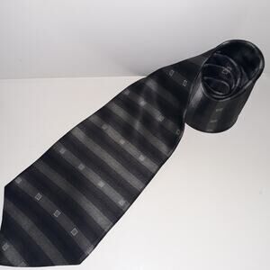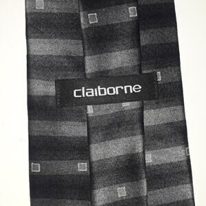 Claiborne Black, Gray Striped Silk Tie 58 inches Made in USA