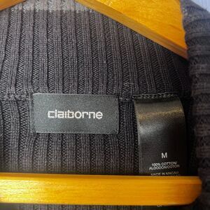 Claiborne Black Ribbed Knit Mock Neck Fisherman Sweater 100% Cotton Size Medium