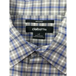 Claiborne Blue White Check Button Up Long Sleeve Shirt Men’s LT