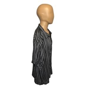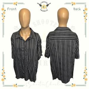Claiborne Button Down Mens Sz XXL Black/White Striped Short Sleeve Shirt Casual