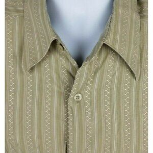 Claiborne Button Front Shirt Mens Size Large Yellow Striped Long Sleeve Business