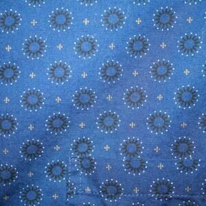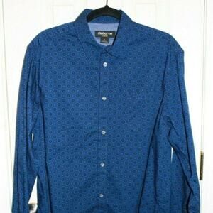 Claiborne, 100% cotton, button down, long sleeved. Blue with a circle print. In excellent condition. Smoke free home.