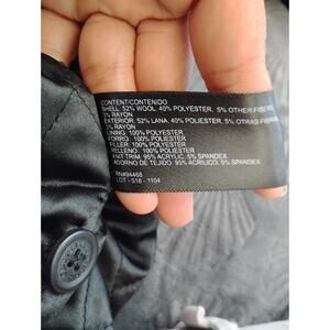 The Claiborne Jacket is a stylish and versatile addition to any man's wardrobe. Made with a wool blend outer shell and lined with polyester, this mid-length jacket is perfect for a variety of occasions, from formal to casual. The XL size ensures a comfortable fit, while the black color adds a sleek touch. With a zip closure and varsity jacket style, this Claiborne jacket is both practical and fashionable, making it a must-have for any man looking to stay warm and stylish.