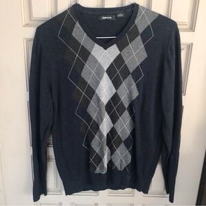 Claiborne Ladies Argyle Sweater Gray SzM Long Sleeves 100% Cotton