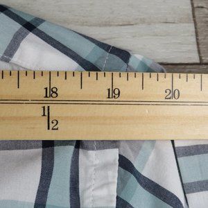 Pre-Owned Condition! 100% Cotton. Handsome White, Green, Gray Plaid Button Down Chest Pocket Shirt with White Glossy LOGO Brand Buttons(spare attached).