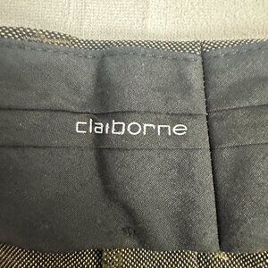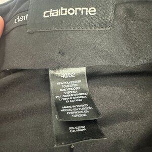 These Claiborne men's dress pants feature a timeless brown herringbone pattern in a flat-front pleated design. Made from a comfortable polyester-viscose blend with added spandex for slight stretch and mobility, these pants are both durable and stylish. Tailored in a size 40x32, they exude a professional and polished look.