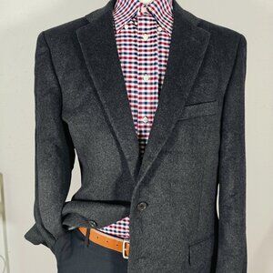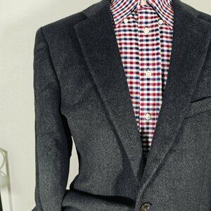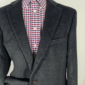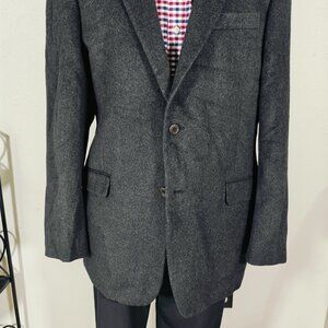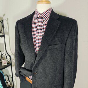 Claiborne Mens Sport Coat Two Button Flannel Wool Silk Cashmere Charcoal BLK 44L