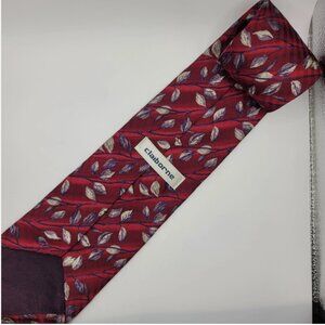 Claiborne Mens Tie 100% Silk Made in U.S.A Red floral stripes