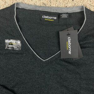 Claiborne Performance Men's Gray V Neck Long Sleeve Knit Sweater Size 3XLT NWT