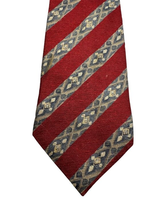 Claiborne Red & Gray Striped Diamond Pattern Silk Tie