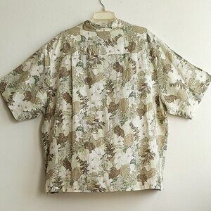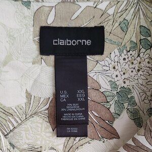 Claiborne Short Sleeve Shirt Beige Floral Silk Linen Button Up Camp Mens…