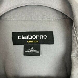 Claiborne Stretch Gray Long Sleeve Button Down Shirt LT Large Tall Basic Casual