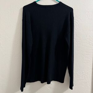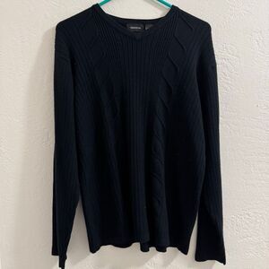 Claiborne Unisex Black Cable Knit Pullover V-Neck Sweater M