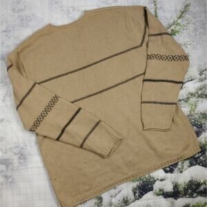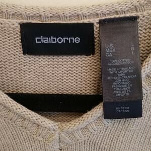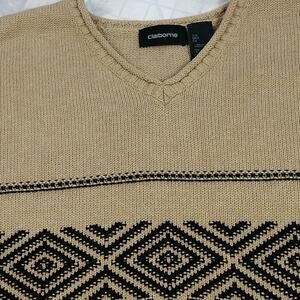 Claiborne V-neck Oversized Sweater size Tan Large Chest Sleeve Graphic Pattern
