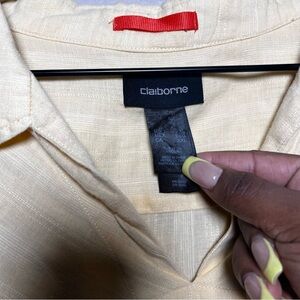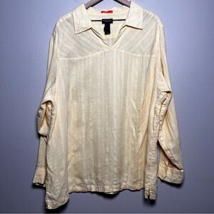 Claiborne Women 100% Linen Plus Size Top XXL Butter Yellow Tunic Popover Lagen