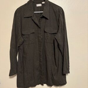 Claiborne Women's Black Pinstripe Button Down Shirt