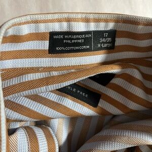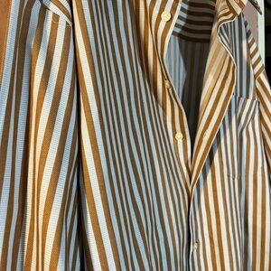 Claiborne men Striped Button-Up Shirt tan light blue work career professional XL