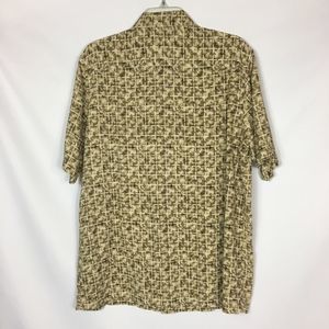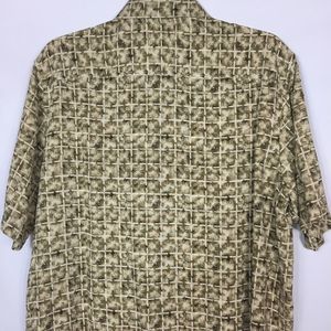 Claiborne Mens M 100% Silk Short Sleeve Shirt Geometric Pattern. Brown and Beige.