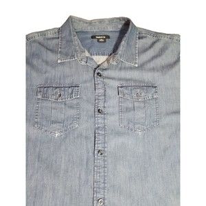 Clairborne Denim Chambray Button Up Long Sleeve Shirt Men Sz XXL Blue Pockets