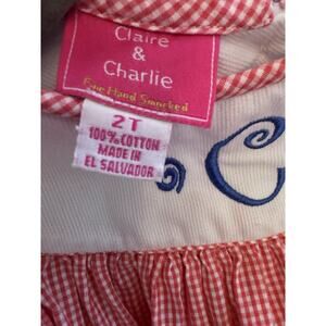 Claire & Charlie Gingham Bishop Dress Embroidered "c" Size 2T