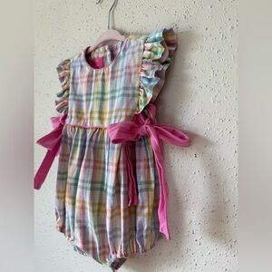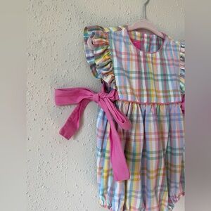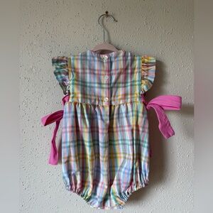 Claire & Charlie Multi Color Pastel Plaid Bubble 24M Flutter Sleeve Side Bows
