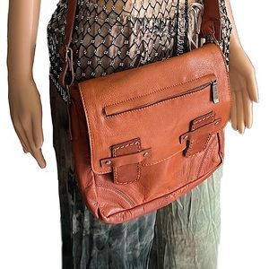 Claire Chase Cognac Brown Leather Small Messenger Bag