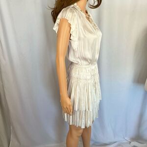 Claire Dress by Reset Creamy White Satin Blouson Mini Dress Ruffles Women’s S