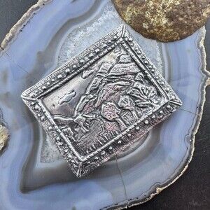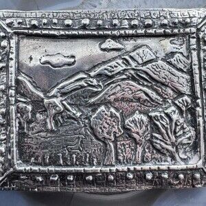 Special Vintage Silver "Sacred Trust" Rectangle Unisex Heavy Belt Buckle, Signed by Taos, New Mexico USA Artist Claire Haye.