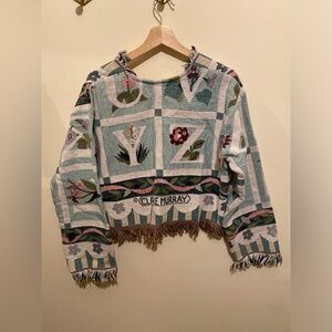 Adorable handmade jacket using a Claire Murray tapestry/throw blanket. Fits like a medium and is a little bit cropped. Never been worn!