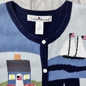 Claire Murray Womens Cardigan Large Ramie Cotton Americana Lighthouses Sailboat