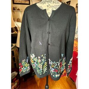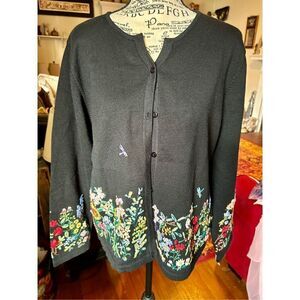 Claire Murray Ribbon Embroidered Cardigan, button up front size large.