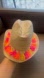 Claire's Beige Straw Hat with Pink and Orange Tassels