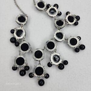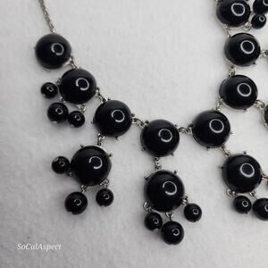 Claire's Black Bubble Necklace Bib Statement Signed Plastic Dangle Gunmetal