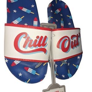 Claire's Chill Out red white and blue popsicle sandal slides NWT