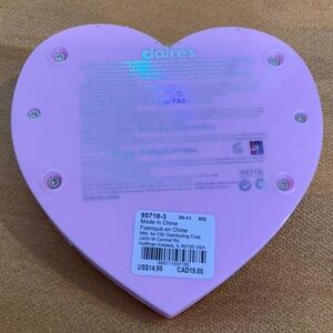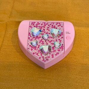 This heart-shaped case adorned with faux pearls opens like magic at the touch of a button to reveal 11 different lip glosses, plus a handy mirror.