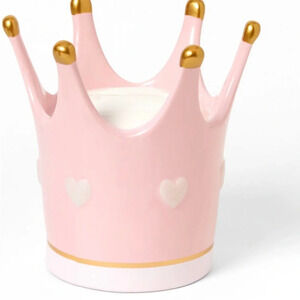 Store your coins inside this royal, ceramic bank. The pastel and lovely design of this crown, accented dainty hearts, makes it a fun décor piece for your room. Height: 6'' Material: Ceramic