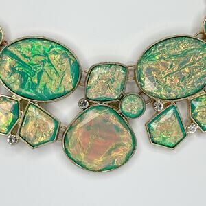 Claire's Irridescent Green and Gold Tone Bib Necklace with Matching Earrings
