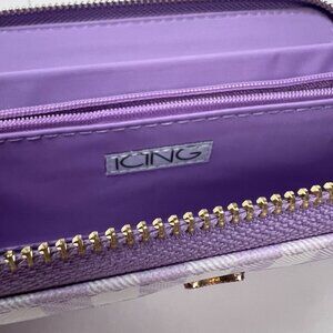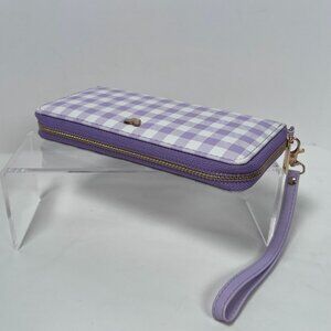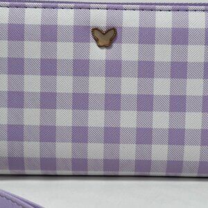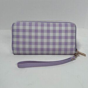 Claire's Lavendar Gingham Butterfly Wristlet Purple White Checkered Wallet