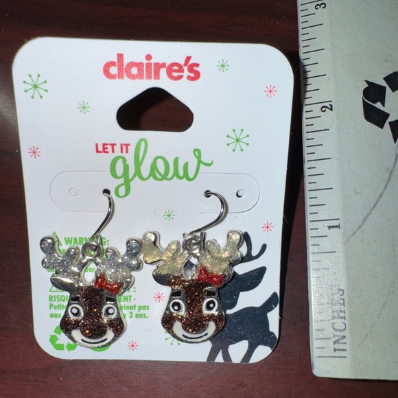 New on card Claire's Let It Glow Festive Reindeer Dangle Earrings with Red Silver Brown