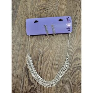 Claire's NWT Silver Rhinestone Formal Prom Wedding Necklace & Earrings Set