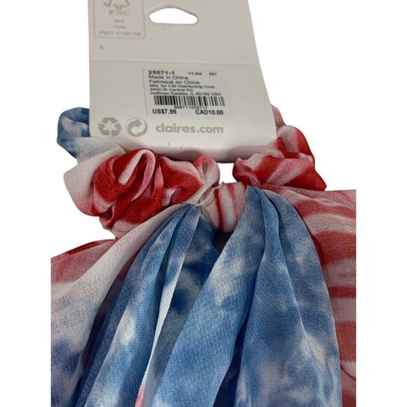 Claires New Hair Elastics Sheer Fabric Cover Train Tail Patriotic