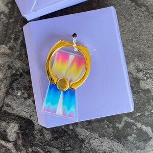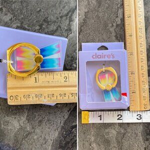 phone grip, phone holder, rainbow design, phone ring, mobile accessory, smartphone grip, adhesive holder, colorful ring, Claire's phone accessory, secure grip, portable phone holder, phone accessory