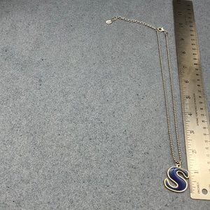 Claire's brand tag, monogram initial letter S pendant necklace, silvertone setting, with cool mood changing color (like a hippie mood ring)!
