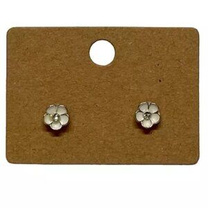 Claire's Sensitive Solution Flower Earrings White Silver Tone Stud Flowers NWOT
