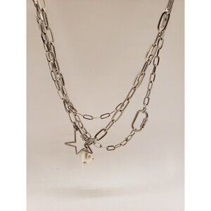 Claires Silver Chain Necklace With Star And Pearl Charms