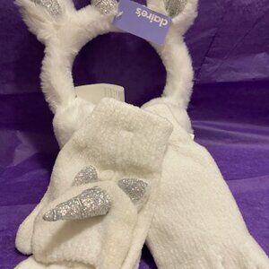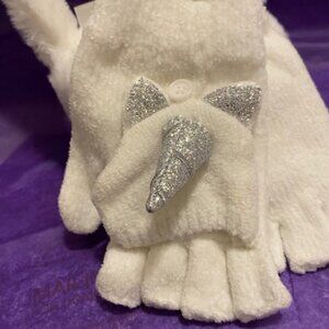 Claire's Unicorn Ear Muffs and Gloves with finger Over (Girls) White and Silver